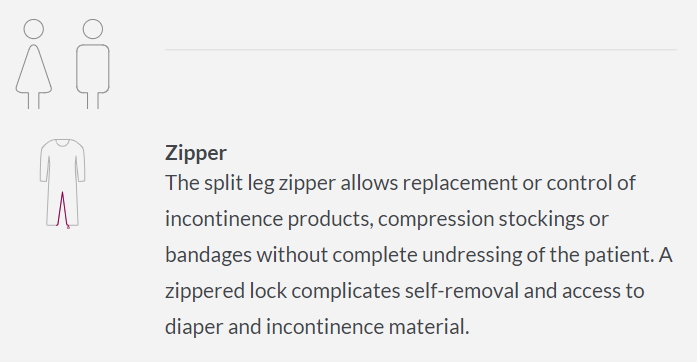 - Replacement of incontinence products without complete removal of the patient’s clothing saves time